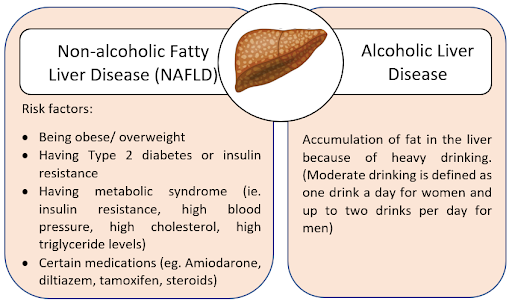 The two types of fatty liver are Non-alcoholic Fatty Liver Disease (NAFLD) and Alcoholic Liver Disease.