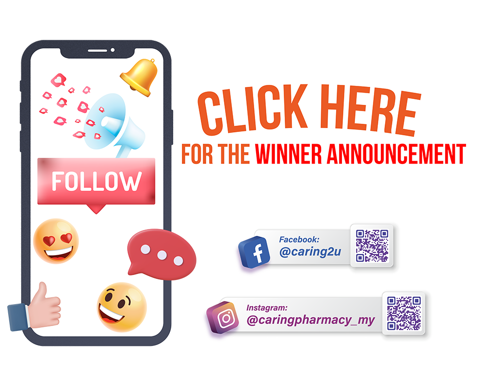 5. Winners will be contacted via SMS at their registered mobile no. within 30 working days after the contest period ends. It shall be the participants responsibility to ensure that their registered mobile no. are current and updated with our Caring Membership. CARiNG Group shall not be held responsible for any loss or damages suffered by participants if their registered mobile no. in Caring Membership’s record is not contactable, current or updated.